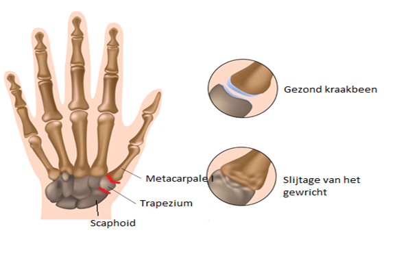 Artrose betekent een beschadigd kraakbeenlaagje van het gewricht dat zorgt voor het goed kunnen scharnieren van botten.